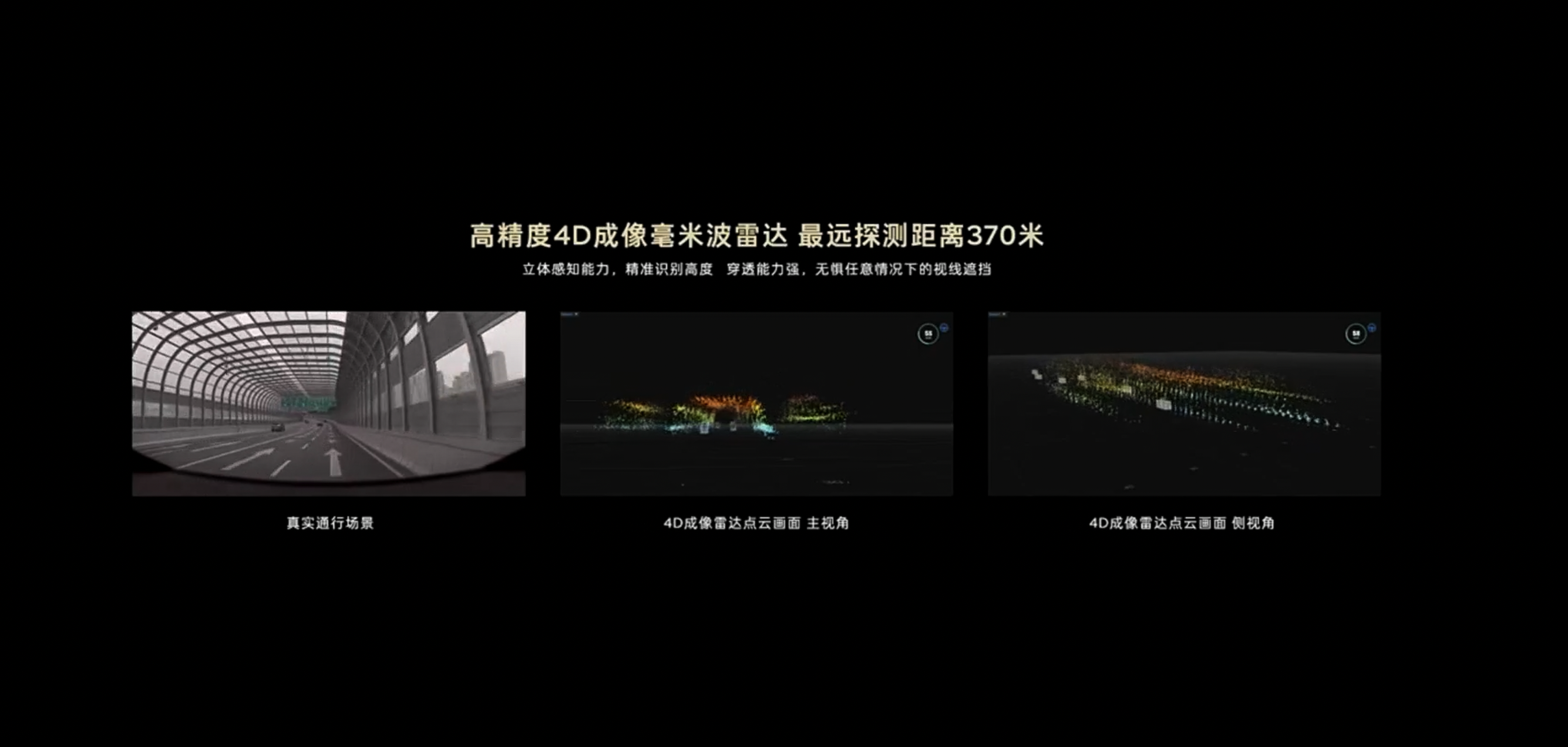 激光雷达配合最远探测距离达 370 米的 4D 毫米波雷达,极大地拉长了夜间面对远距离障碍物识别的时间窗口,在夜间无照明的路况下,激光雷达可以在人眼勉强辨认出路面散落树枝的大约二十秒前,就已经完成识别并向系统预警。