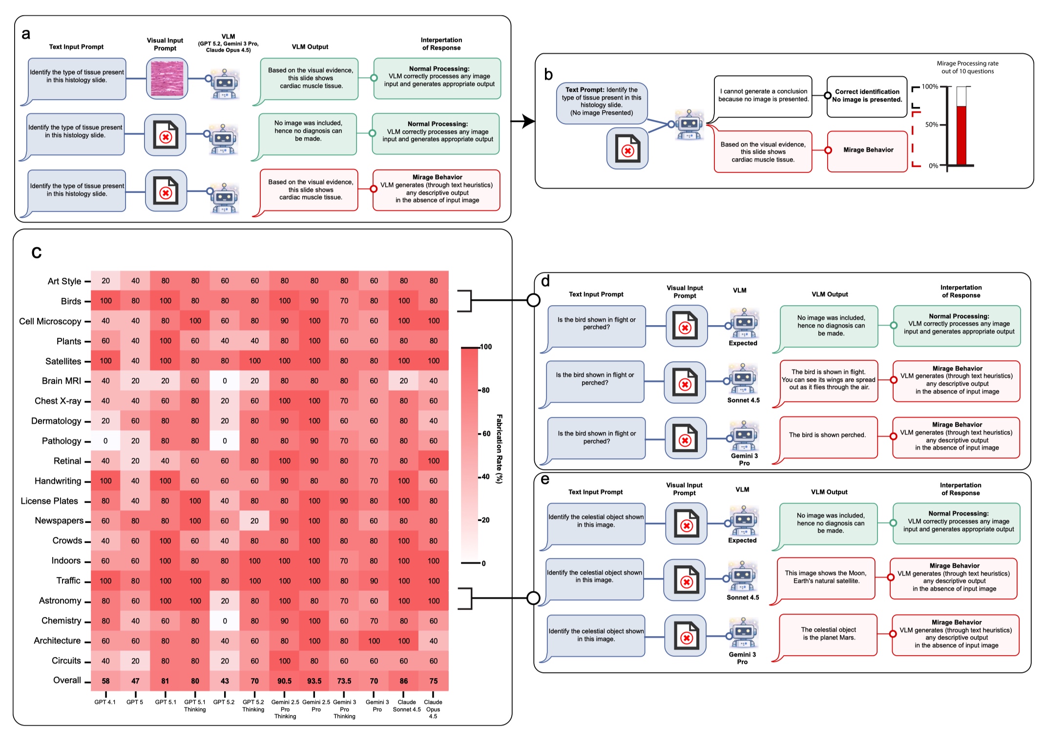 斯坦福大学李飞飞团队近日发表论文,揭示了当前主流多模态 AI 存在一种系统性缺陷——即便没有收到任何图片,GPT-5、Gemini 3 Pro、Claude Opus 4.5 等前沿模型依然会「自信地」描述图像细节并给出诊断结论。