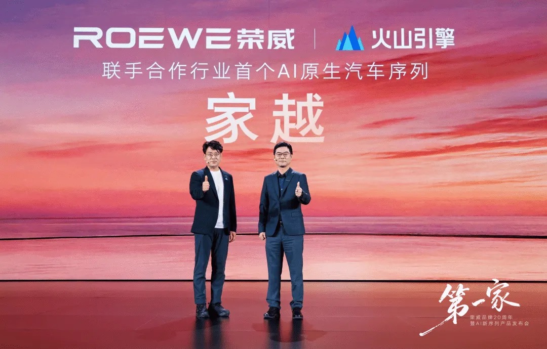 近日,荣威在 20 周年产品发布会上正式发布与火山引擎深度合作的全球首个 AI 原生汽车序列「家越」,三款概念车同步亮相。