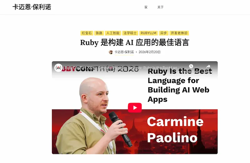 作者使用 Python、JavaScript、Ruby 三种语言写一个 AI Agent,比较后认为 Ruby 写 AI 应用最方便。