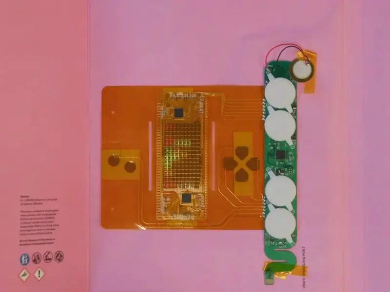 奥秘就是封面里面,嵌入了一块非常薄的柔性电路板。