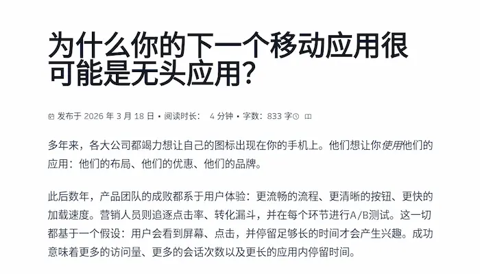 如果我们未来都通过 AI 助手使用手机,那么各种 App 就不需要显示模块了(无头),只需向 AI 助手提供数据接口。
