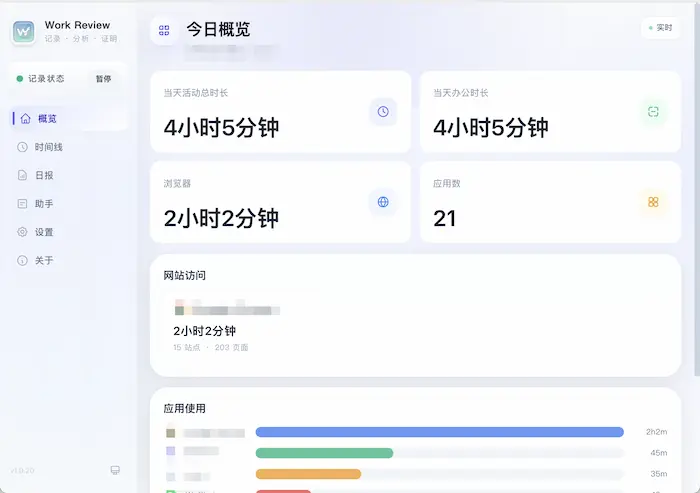 开源的 Win/Mac 桌面应用,在后台持续记录当天使用过的应用、访问过的网站等,便于整理成个人的工作轨迹。(@wm94i 投稿)