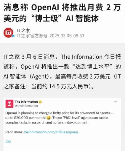 OpenAI 曾经设想过月费2万美元的套餐,提供最顶级、无限量的大模型服务。