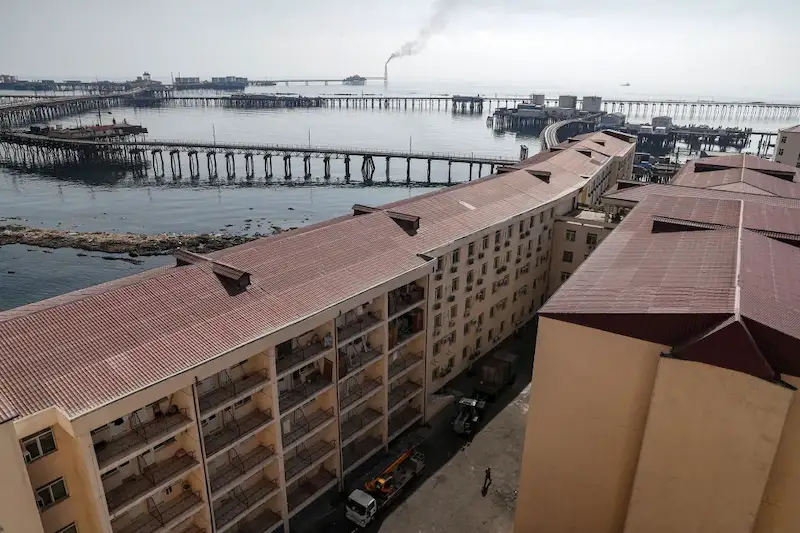 上个世纪中期,里海发现了石油。当时的苏联就开始在湖面上建设石油平台,距离岸边有60英里,乘坐6个小时的渡轮才能到达。
