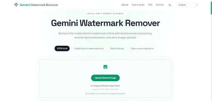 Gemini 生成图片的可见水印去除工具,图片不需要上传到服务器,直接在本地浏览器处理。(@liuyan-wjy 投稿)