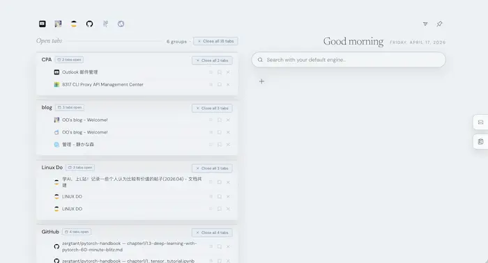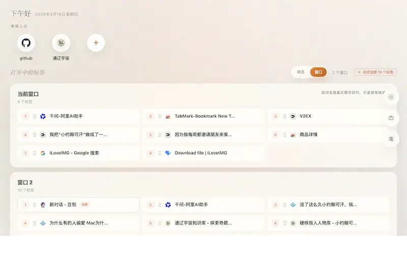 开源的 Chrome 插件,把新打开的标签主页变成标签管理器。(@V-IOLE-T 投稿)