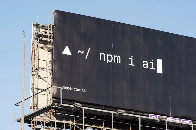 我见过的最酷广告牌,只有一行命令,推广一个 AI 工具包。普通人看不懂也没关系,反正不是给他们用的。(via