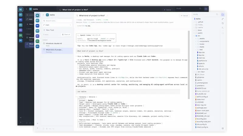 开源的 AI 编程任务管理器,快速切换多任务管理,集成了原生终端、会话管理、代码编辑、Git 等功能,大小不到 10MB。(@hanshuaikang 投稿)