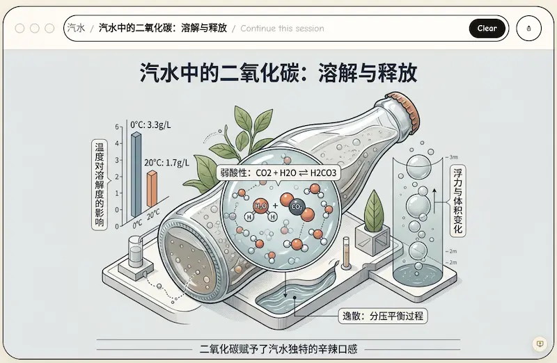 上图是输入"汽水"生成的解释图片,点击局部,还能生成进一步的解释。