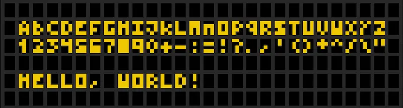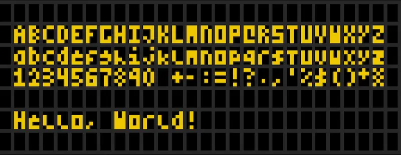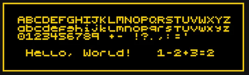 整个字体仅占用350字节的内存,所以很适合老式设备或低端设备,即使只有 16kB 内存的8位微控制器,也能完成字体渲染。