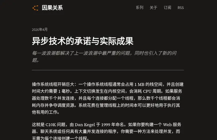一篇概述,介绍异步编程的由来,如何发展出 async/await 这种普遍接受的解法,以及存在的问题,写得比较深入。