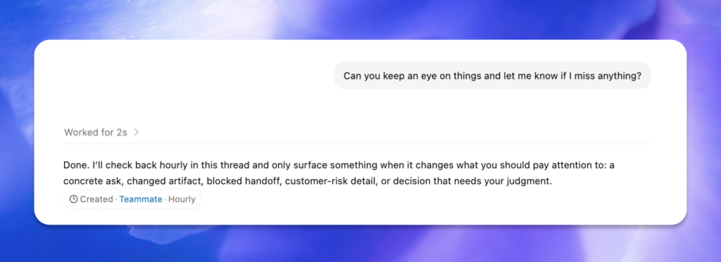 “You can set up a thread that’s designed for a daily brief, or a thread that’s designed to triage Slack or something like that,” Ambrosio says. “Or you can set this up as a personal assistant that every five minutes gets a heartbeat run, similar to an Open Claw, and then goes and does a bunch of stuff with plugins. So this is a really powerful axis of personalization for the types of tasks you need to get done, especially those that are pretty persistent.”