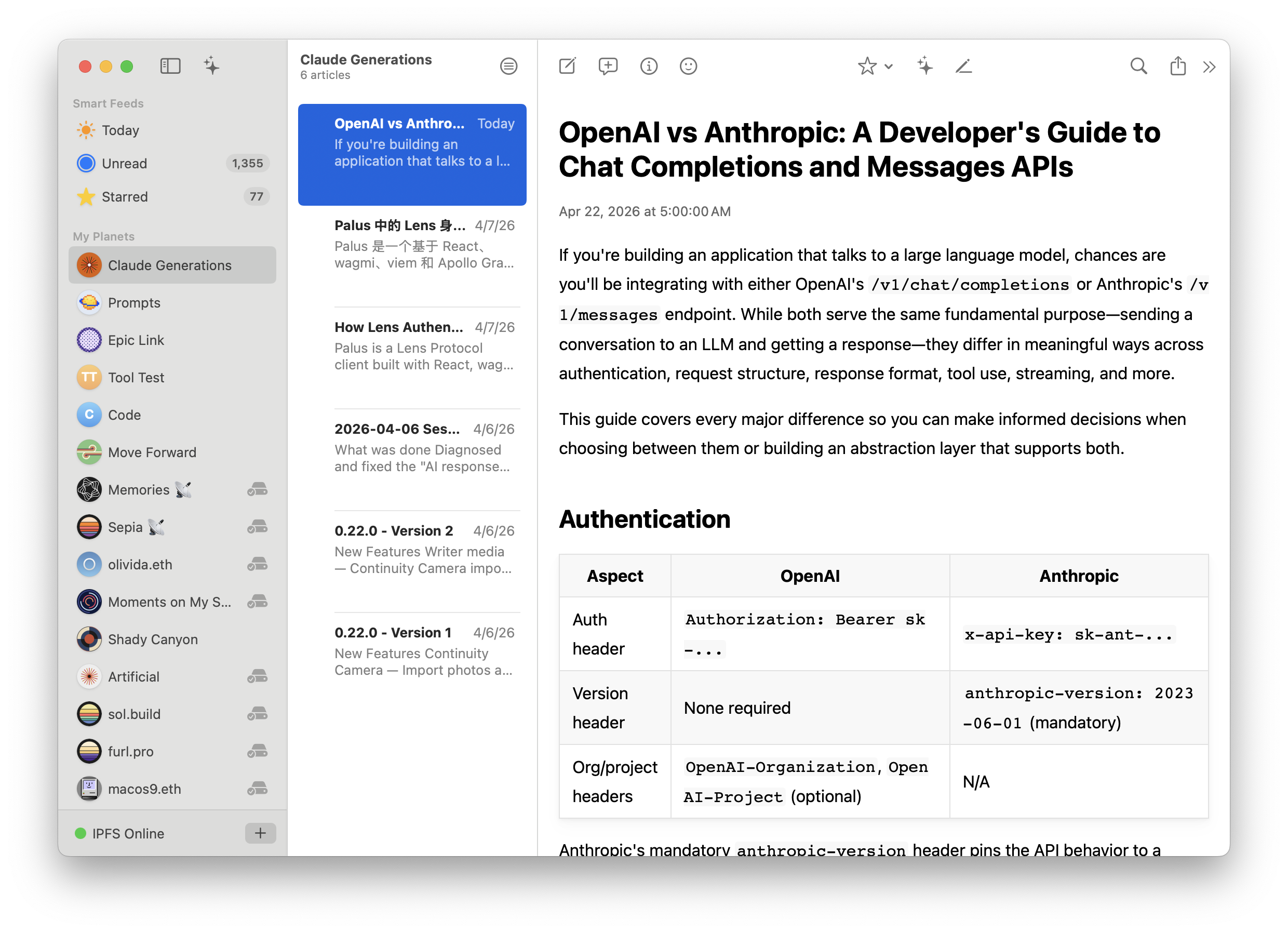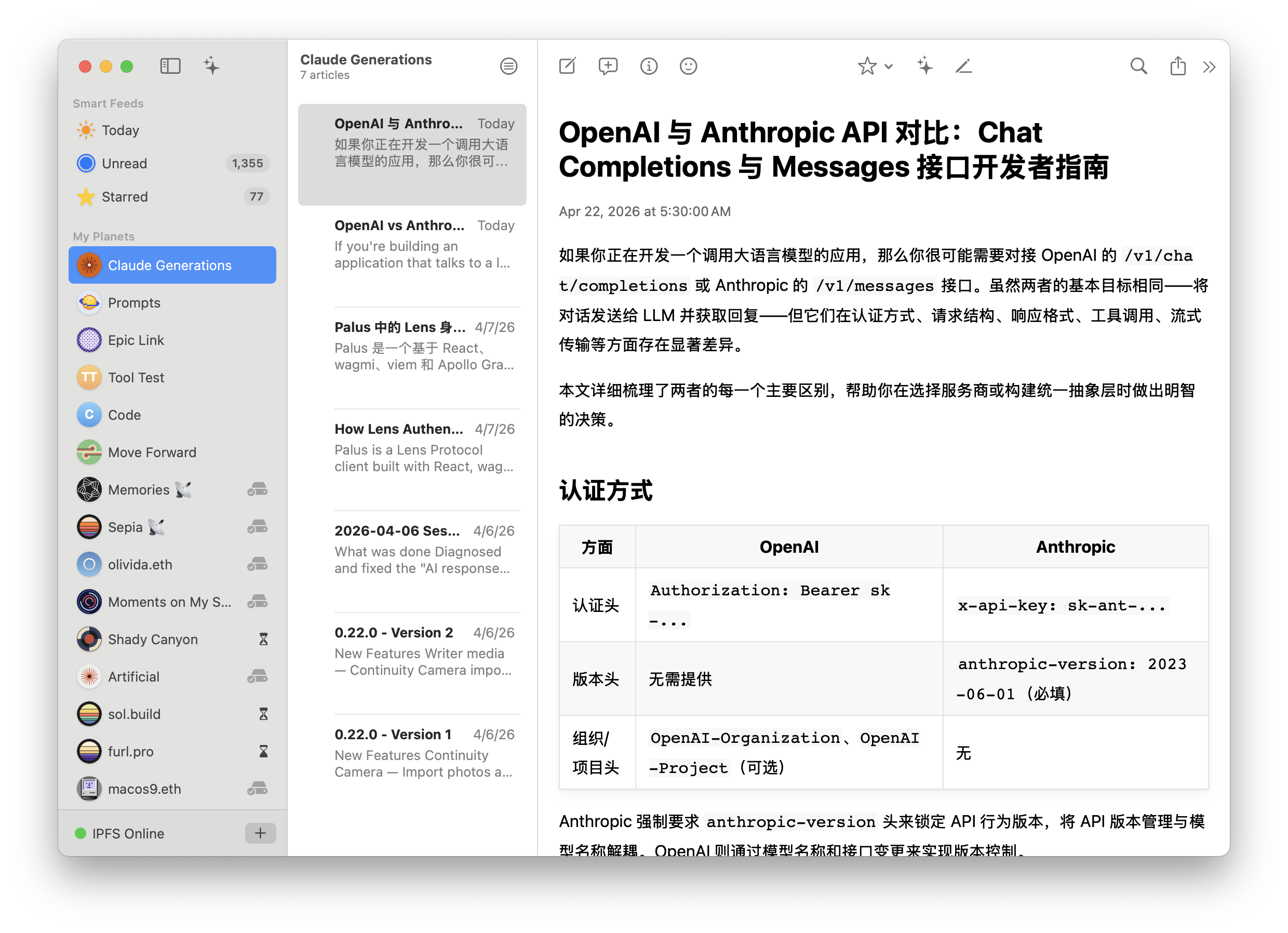 首页 > 人工智能 > [Planet] 让 Claude Code 研究 OpenAI 和 Anthropic 的 API 区别,然后把文章发到 Planet [Planet] 让 Claude Code 研究 OpenAI 和 Anthropic 的 API 区别,然后把文章发到 Planet 人工智能 来源: V2EX 2026-04-22 19:52 阅读 5 初始提示词: 生成效果: 英文原版 https://k51qzi5uqu5dluwqy5gdyg2i4xsa18f70md07m5kyvshli6jisk5qs5b2ygw93.sol.build/0E4B45F4-7A16-441C-AFE7-1EEE1C6A79DF/ 中文翻译 https://k51qzi5uqu5dluwqy5gdyg2i4xsa18f70md07m5kyvshli6jisk5qs5b2ygw93.sol.build/15202FA6-2CC3-402F-8A28-2DA8267BAD84/ 推荐阅读:权威网络骗子查询网 | 星辰云IDC 原文链接:https://www.v2ex.com/t/1207821#reply0