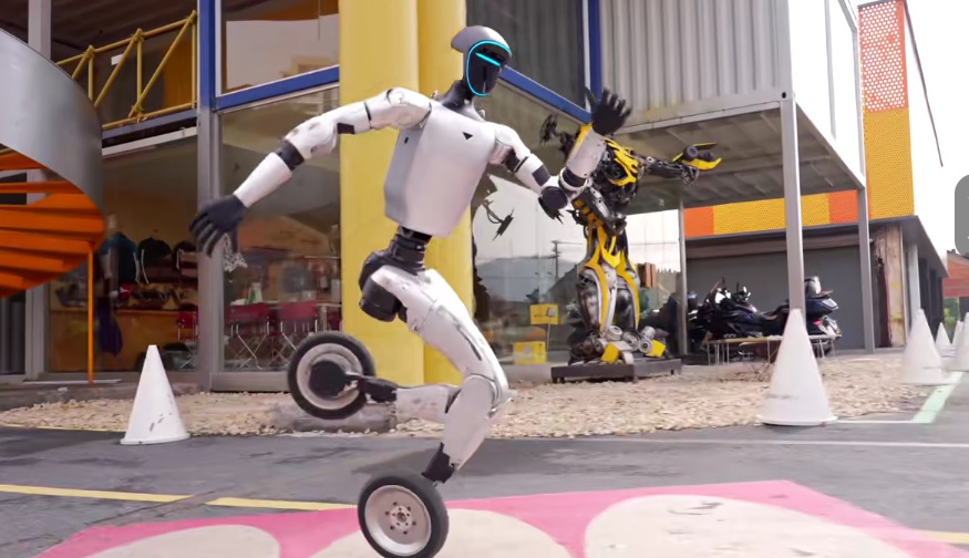 宇树科技在视频中表示,「人形机器人是最理想的通用机器人(适配通用 AI 和人类数据),可以没有轮子,也可以有轮子,随意。」